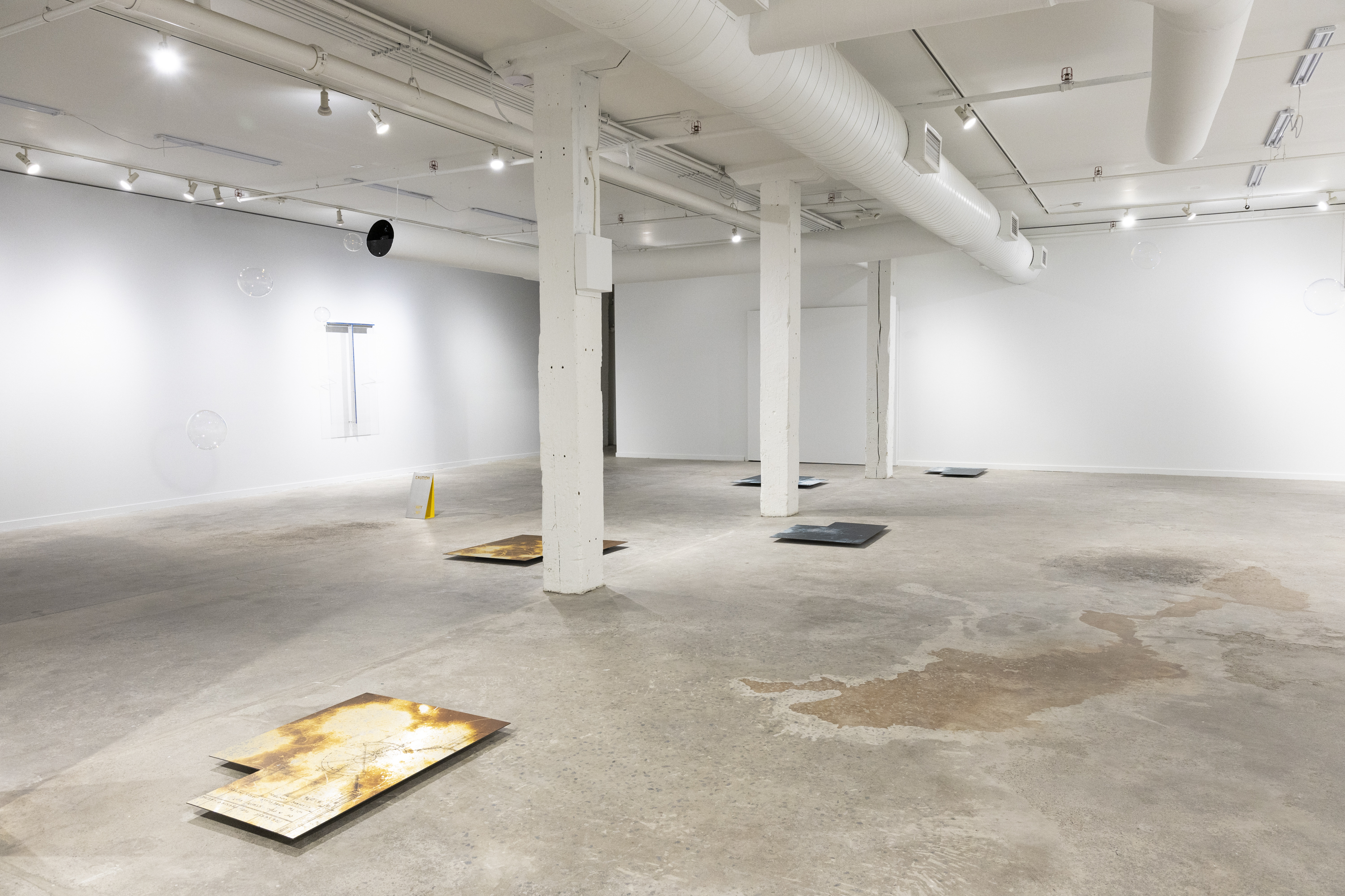 Plexiglass, aluminum angles, bolts, silicone, bottle cap, pigeon feather, pebble, dust, dead leaf.Solo Show at SPACES (June 2024)